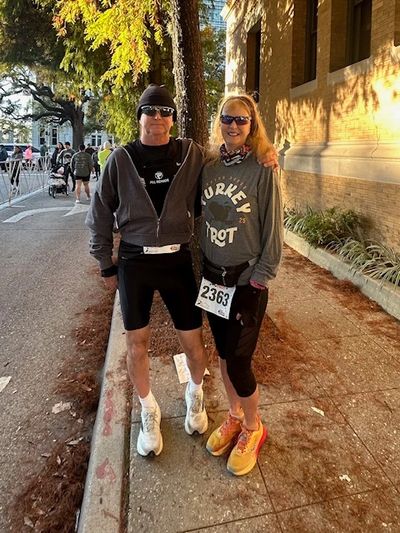 Congratulations to Robert and Susan who finished the Turkey Trot 5K on Thanksgiving Day in Baton Rouge, LA. They both finished first in their respective age groups (Susan with a time of 31:30 and Robert with a time of 22:28). Awesome! So proud of you both! Thank you for representing the Seven Hills Running Club!